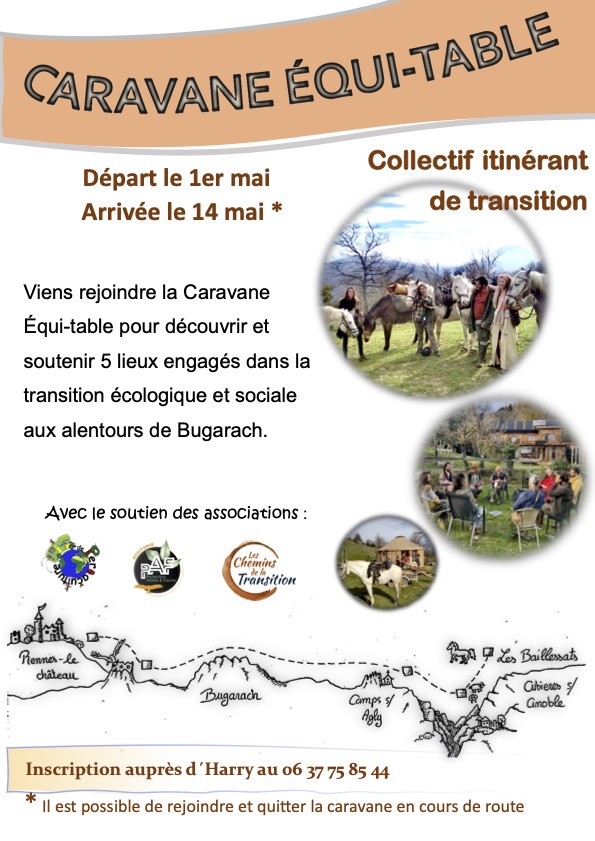 Le Projet Caravane Équi’table est un collectif de transition qui va être accueilli par 5 éco-lieux autour de Bugarach dans l’Aude du 1er au 14 mai.